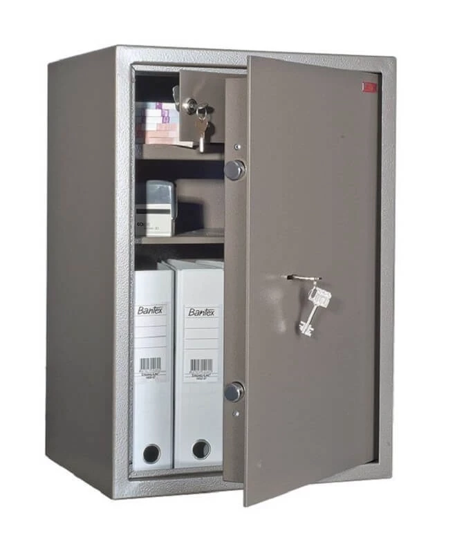 - Сейф оснащён кассовым отделением (трейзером) для удобного хранения наличных средств.