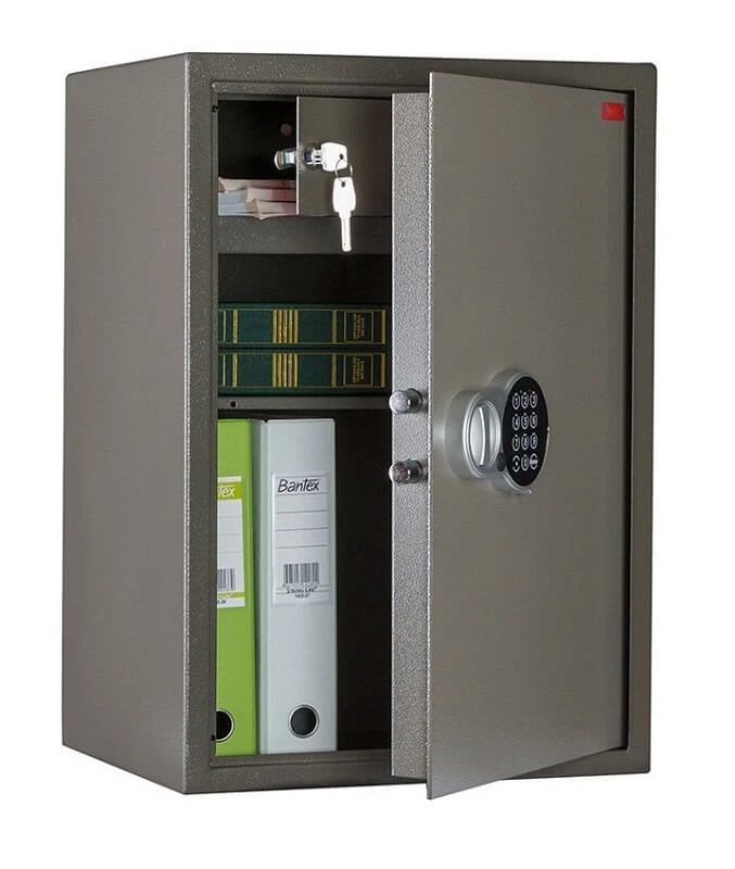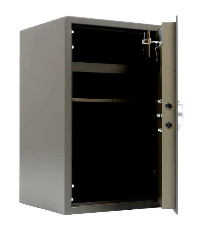 - Объем сейфа составляет 66 л с полезным пространством 13 л для хранения основных ценностей и наличности до 50 тыс. рублей.
