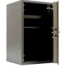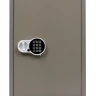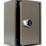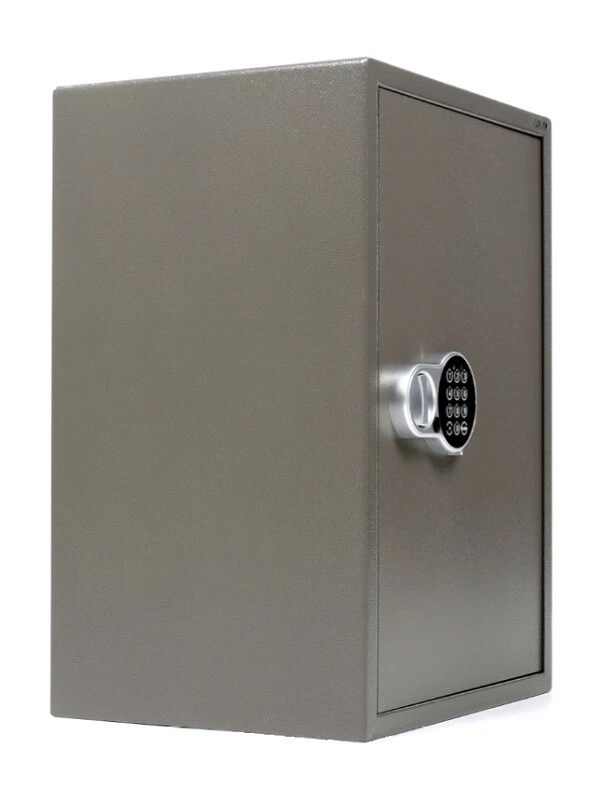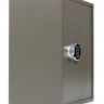 - Порошковое покрытие в коричневом оттенке с эффектом молотковой эмали защищает поверхность от мелких повреждений и делает сейф эстетически привлекательным.