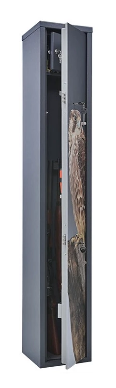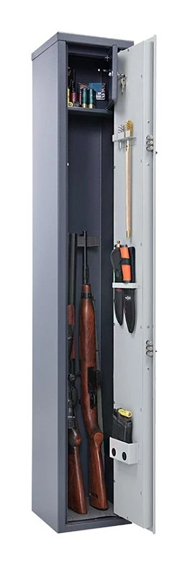 - Вместимость: сейф способен разместить до трех длинноствольных ружей высотой до 1330 мм и имеет отделение для патронов объемом 6.3 л.