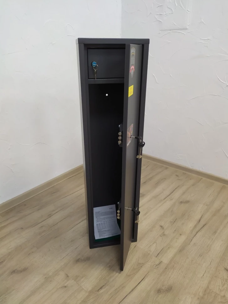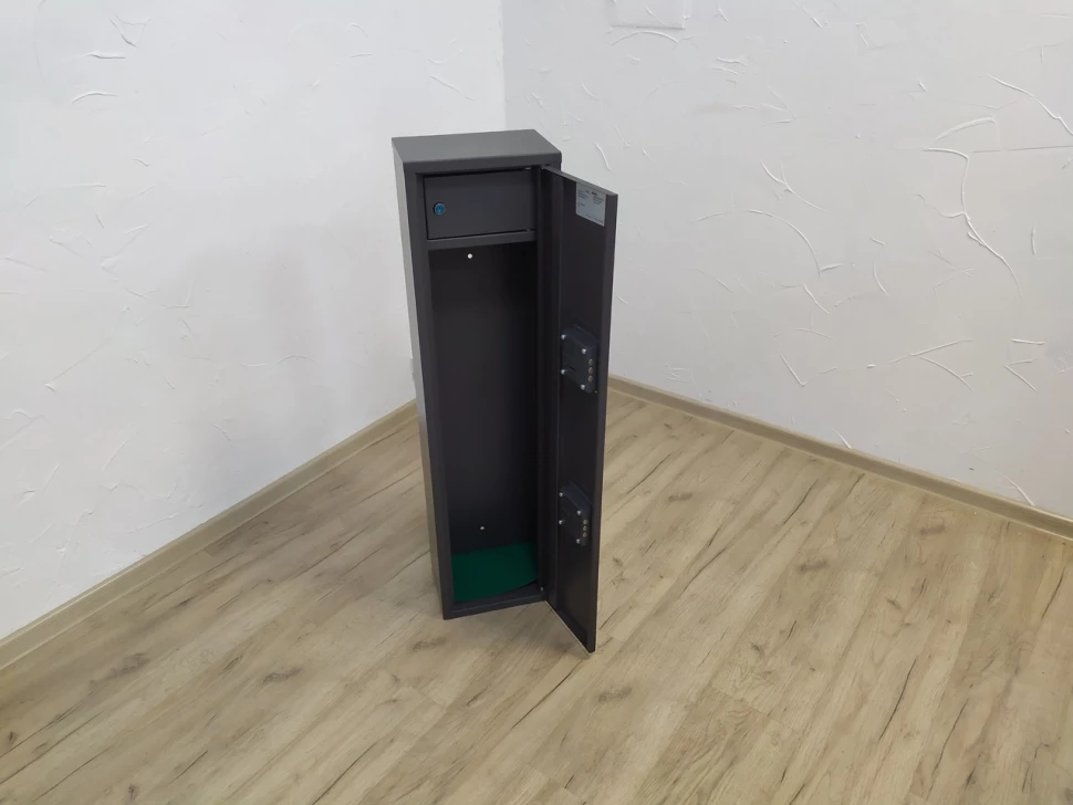 - Объем внутреннего пространства составляет 41 литр, что обеспечивает достаточное место для безопасного хранения одного ствола.
