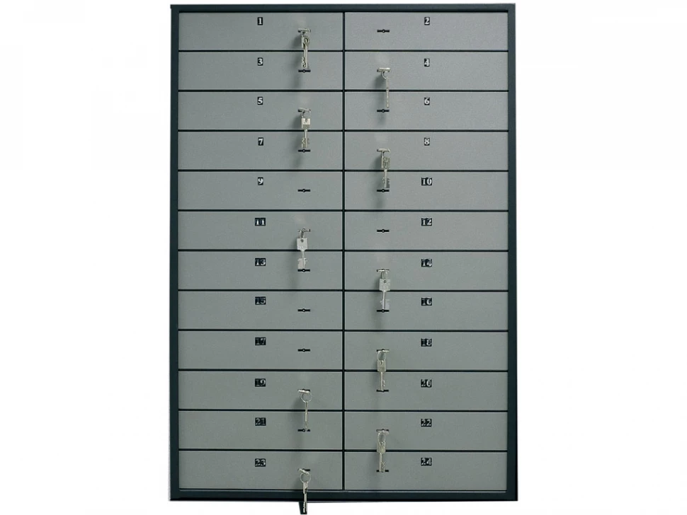 - комплектуются двухключевыми замками (банк + клиентский) с одной скважиной KABA MAUER, с перенастраиваемым замком банка