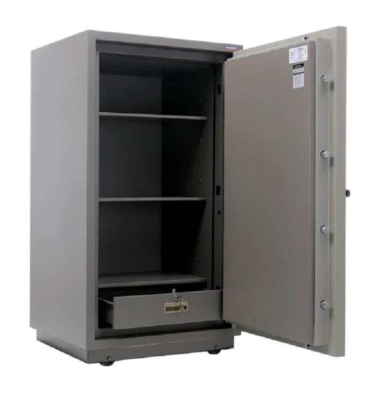 - Корпус и двери сейфа залиты огнеупорным бетоном, что значительно увеличивает прочность.