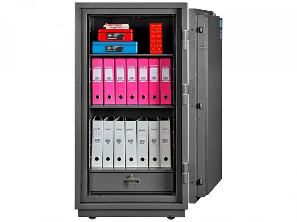 - Комплектация с кодовым электронным замком и ключевым замком для дополнительной безопасности.