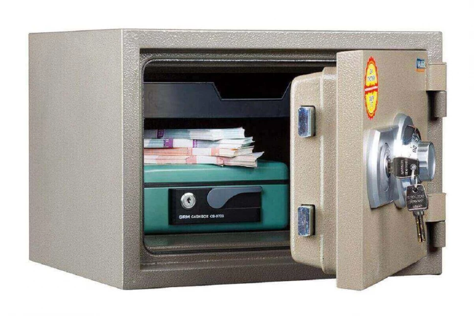 - Комплексная система защиты включает кодовый механический замок без возможности смены кода и ключевой замок для дополнительной безопасности.