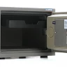 - Сейф обладает красивым внешним видом благодаря порошковому покрытию с эффектом молотковой эмали в коричневых тонах.