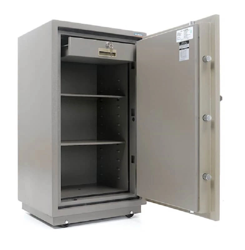 - Корпус и дверь изготовлены с использованием запатентованного огнестойкого бетона, что обеспечивает дополнительную защиту.