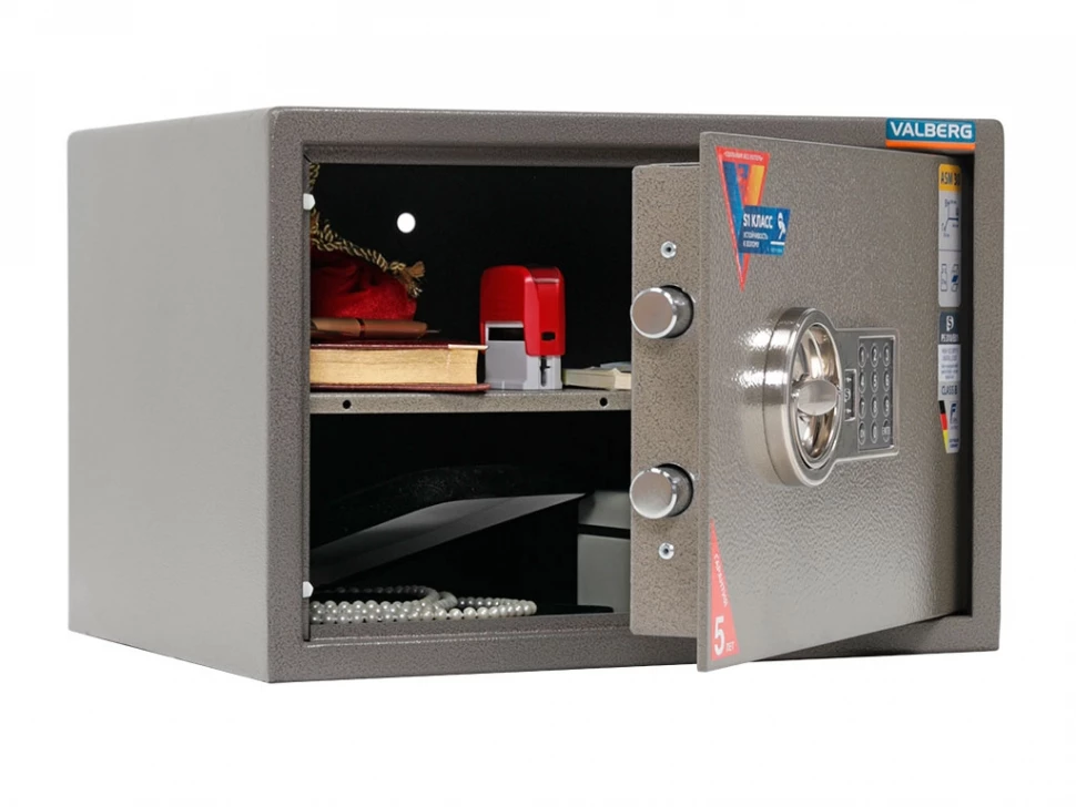 Электронный сейф Valberg ASM 30 EL (300x440x355 мм) — надежное решение для хранения документов и ценностей как в вашем доме, так и в офисе. Этот сейф предлагает защиту вашего имущества с классом взломостойкости S1 по стандарту ГОСТ Р. С толщиной лицевой панели 5 мм и боковых стенок 2 мм, он обеспечивает надежную безопасность, а его стильный коричневый цвет с эффектом молотковой эмали выделяет сейф среди других моделей.